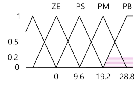 퍼지 집합 PS에 대한 소속 정도 ⇒ μ (𝜽̇) = 1/5 = 0.2