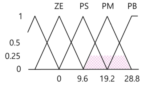 퍼지 집합 PM에 대한 소속 정도 ⇒ μ (𝜽) = 1/4 = 0.25