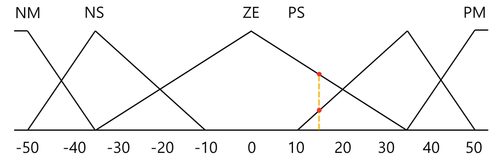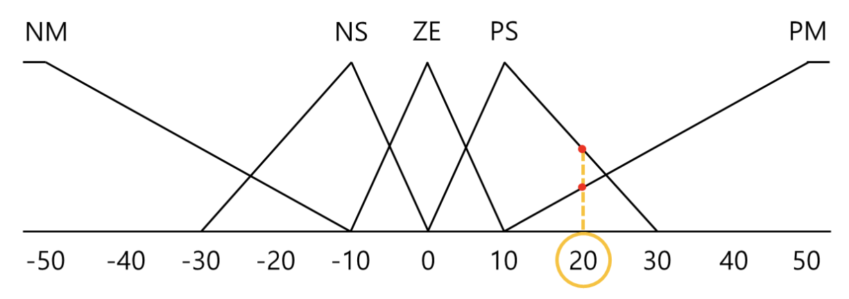 𝑷𝑺(𝜃 = 20) ∩ 𝒁𝑬(𝜃̇ = 15) = 𝑃𝑆(0.5)