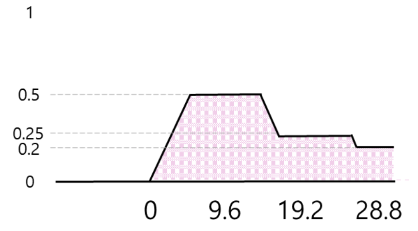 = (2.4 + 16.8 + 19.2 + 21.6 + 24 + 26.4) * 0.25 + (4.8 + 7.2 + 9.6 + 12 + 14.4) * 0.5 + 28.8 * 0.2 / 0.25 * 6 + 0.5 * 5 + 0.2