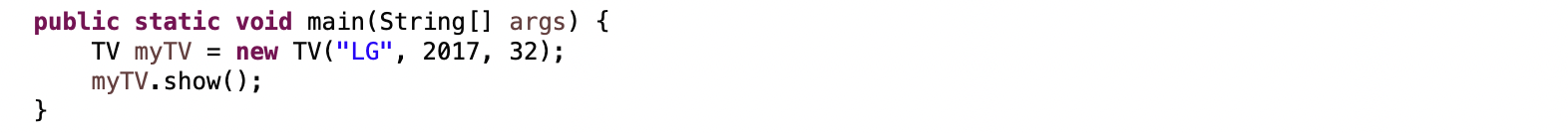 TV myTV = new TV("LG", 2017, 32);