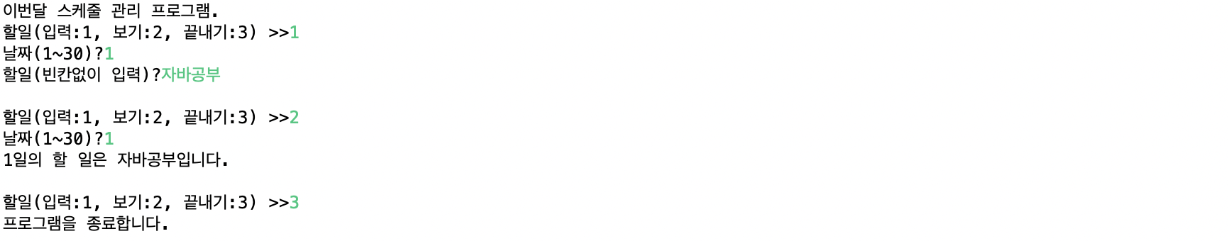 - 없는 이름, 없는 번호, 없는 메뉴, 잘못된 취소 등에 대해서 오류 메시지를 출력하고 사용자가 다시 시도하도록 한다.