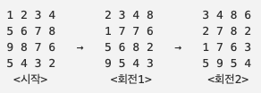 배열은 다음과 같이 반시계 방향으로 돌려야 한다.