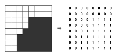 위 그림에서 왼쪽의 영상은 오른쪽의 배열과 같이 숫자로 주어지며,