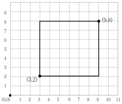 x2차원 격자공간에 두 개의 꼭짓점 좌표로 표현되는 직사각형이 있다.
